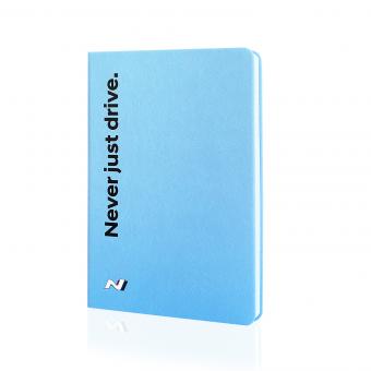 Das Cover in Performance Blue umschließt die karierten Blätter des Buchs und spricht mit dem Schriftzug „Drive“ auf der Vorderseite die sportliche Sprache der N-Modelle.