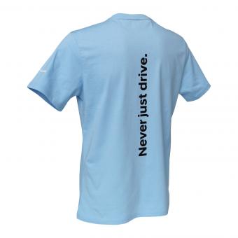 Neben dem weißen Hyundai Logo in 3D Rubber Print auf der Schulter, hat dieses Shirt den „Never just drive“ Schriftzug in schwarz, entlang der Wirbelsäule, auf dem Rücken stehen. Das Material aus 100% Baumwolle lässt sie die Qualität dieses T-Shirts spüren.